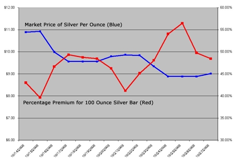 Among the unknowns, of course, are the effects of de facto partial bank nationalization by the U.S., and issues such as which types of participants will be able to play in the commodity markets, and to what extent. Reading between the lines of what Bernanke said in mid-October, it’s pretty clear that they don’t intend to have asset bubbles going forward because of the pain involved in deflating these bubbles. So I think values will not be allowed to get out of hand once again. I’m not talking about gold price suppression here. Far from it. I’m just saying that asset bubbles in general that make for these kind of outcomes probably will be regulated away, or at least in large part.